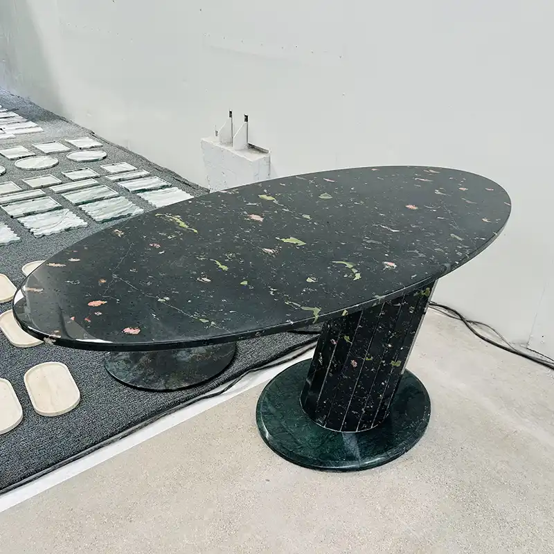 Stół jadalny to coś więcej niż płaska powierzchnia; To tam rodziny i przyjaciele spotykają się i posiłki stają się wspomnieniami. Zielony marmurowy stół jadalny zamienia każdą normalną chwilę w coś wyjątkowego. Nie robi dużo hałasu ani efektownych rzeczy, ale zawsze pozostawia wrażenie.