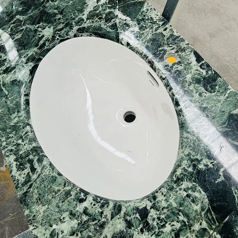 Marmurowy top Verde Ramegiato jest czymś więcej niż blatem; Importuje piękno, pokój i wyrafinowanie, które nigdy nie wyjdą z mody w codzienną rutynę. Ten produkt wprowadza coś wyjątkowego do każdego pokoju, niezależnie od tego, czy budujesz spokojne rekolekcje w domu, czy przebudowujesz luksusową łazienkę hotelową.